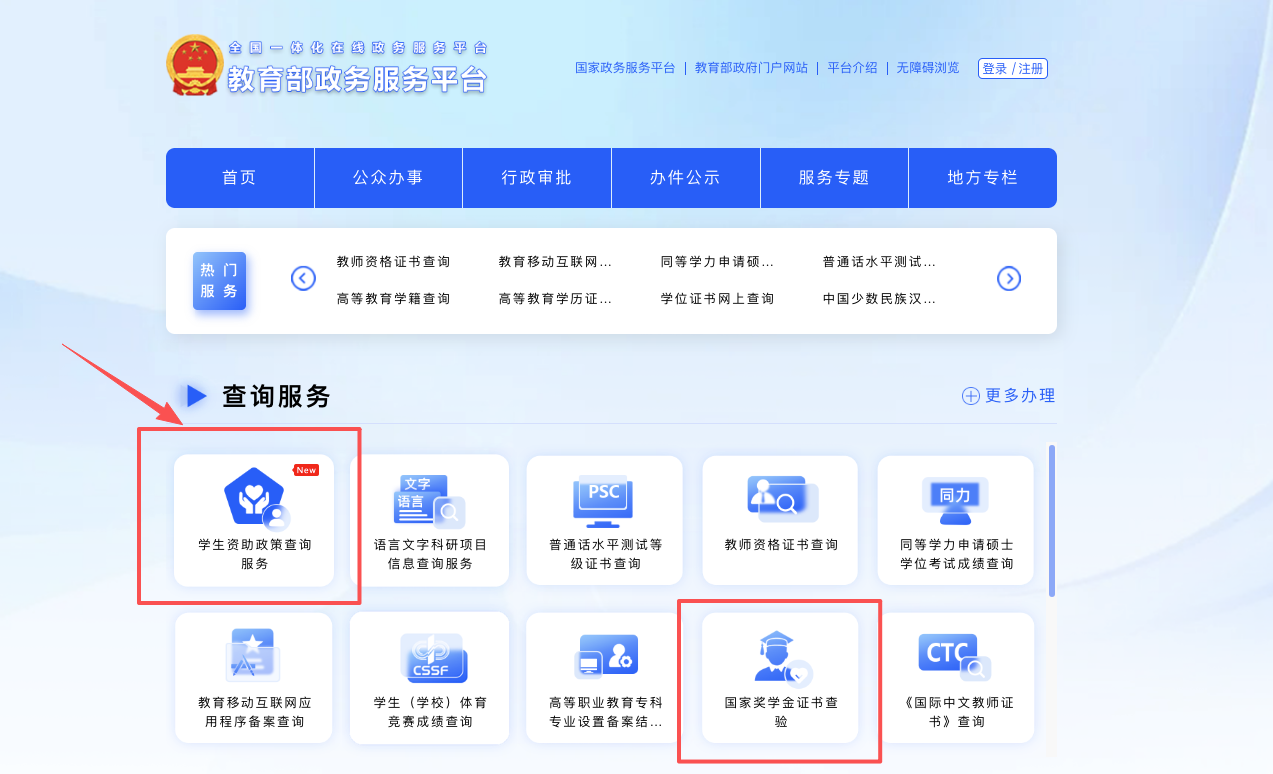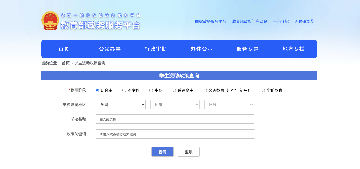 学生资助政策查询服务在教育部政务服务平台正式上线